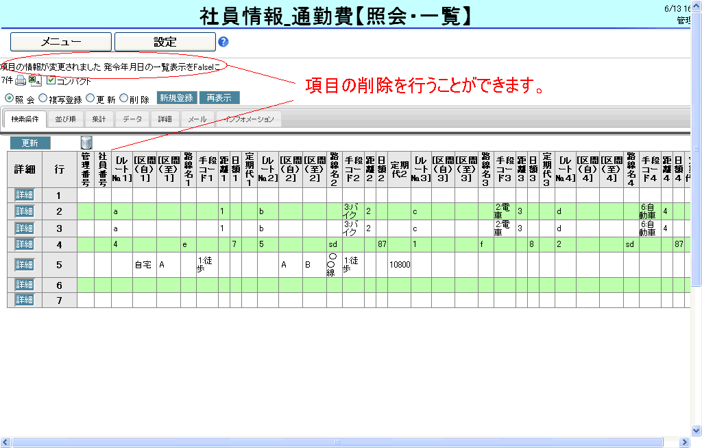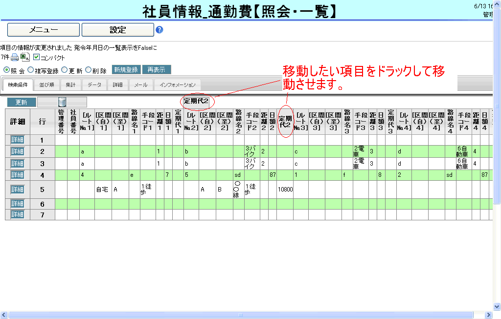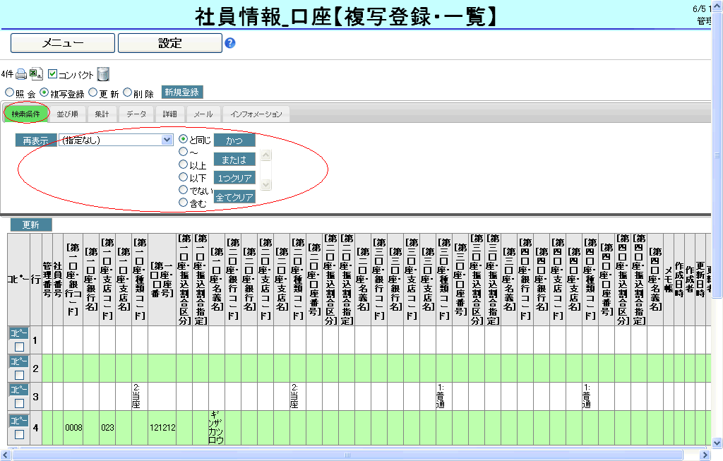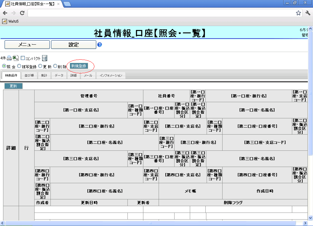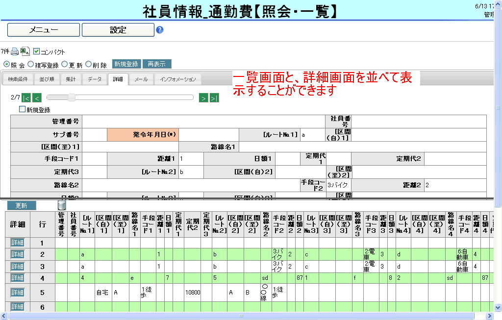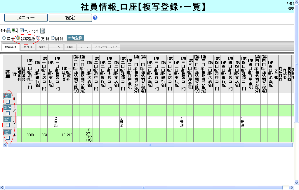 複写登録を選択すると、「詳細」と表示されていた部分が「コピー」に変わり、登録データをコピーすることが可能です