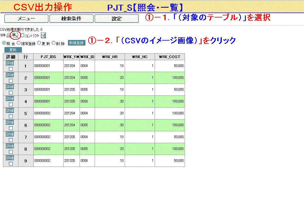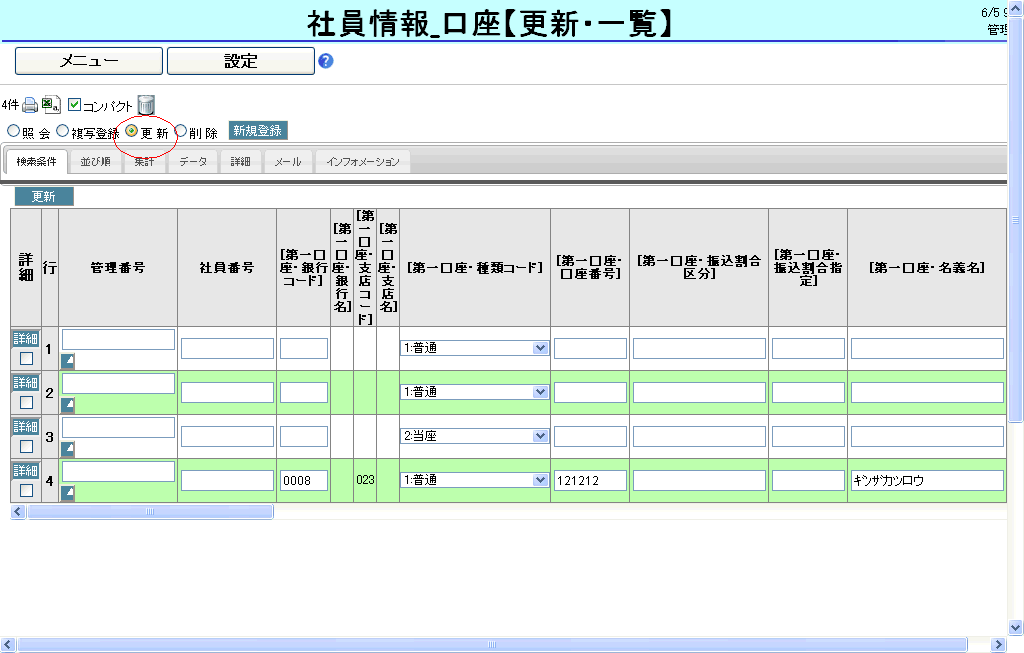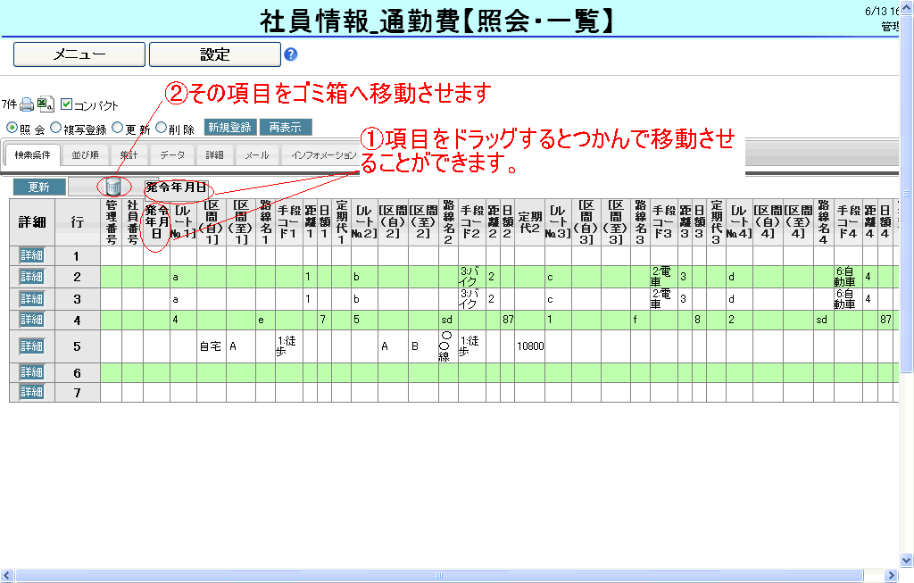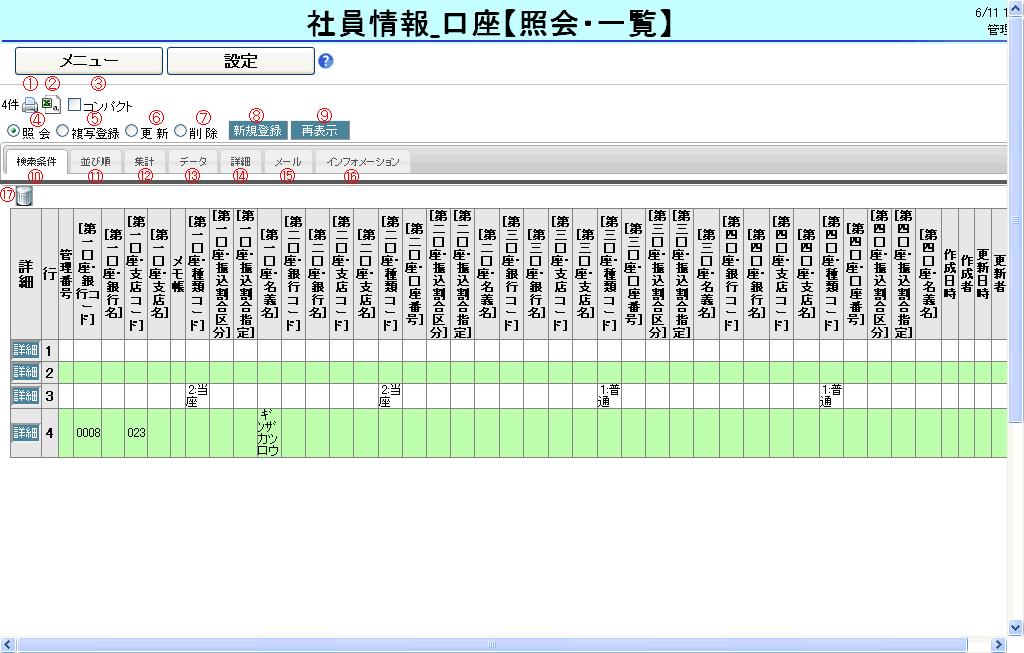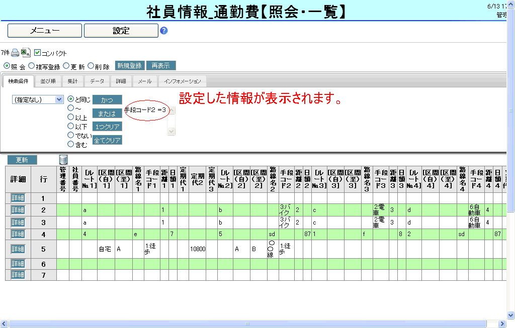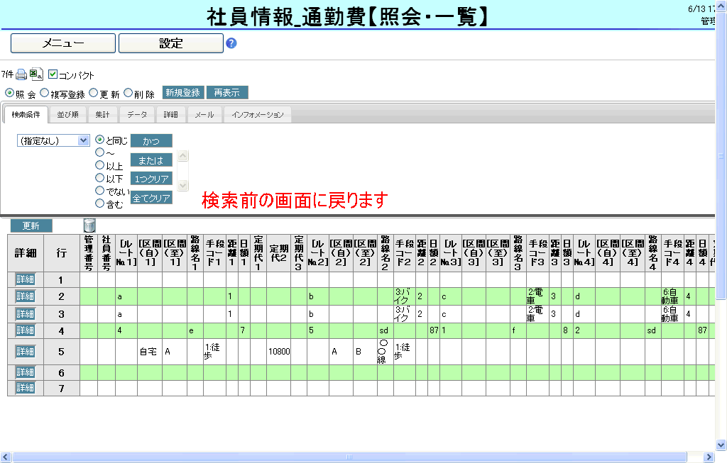 複写登録を選択すると、「詳細」と表示されていた部分が「コピー」に変わり、登録データをコピーすることが可能です
