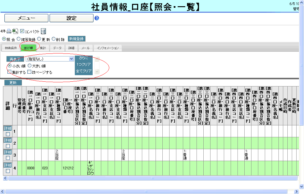 並び順のタブをクリックすると、以下のような画面に変わり、並び順の変更が可能です