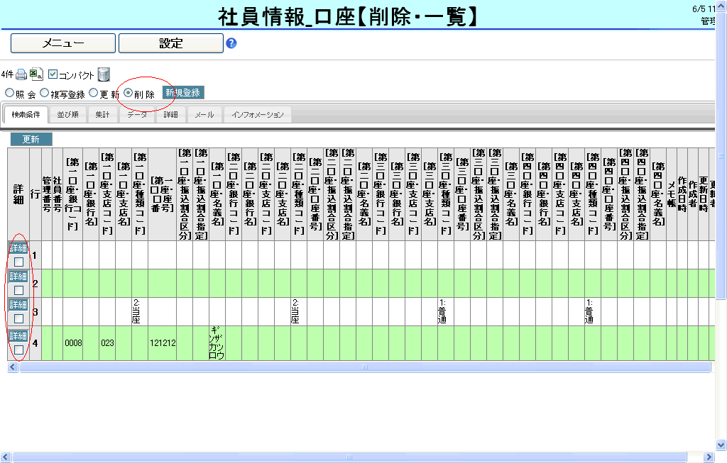 詳細画面の中に削除ボタンができ、そのボタンを押下して、一覧画面に戻るとそのデータが削除されます