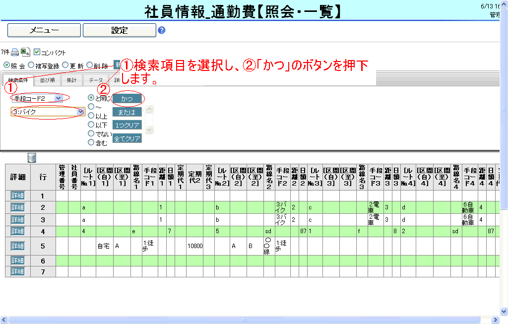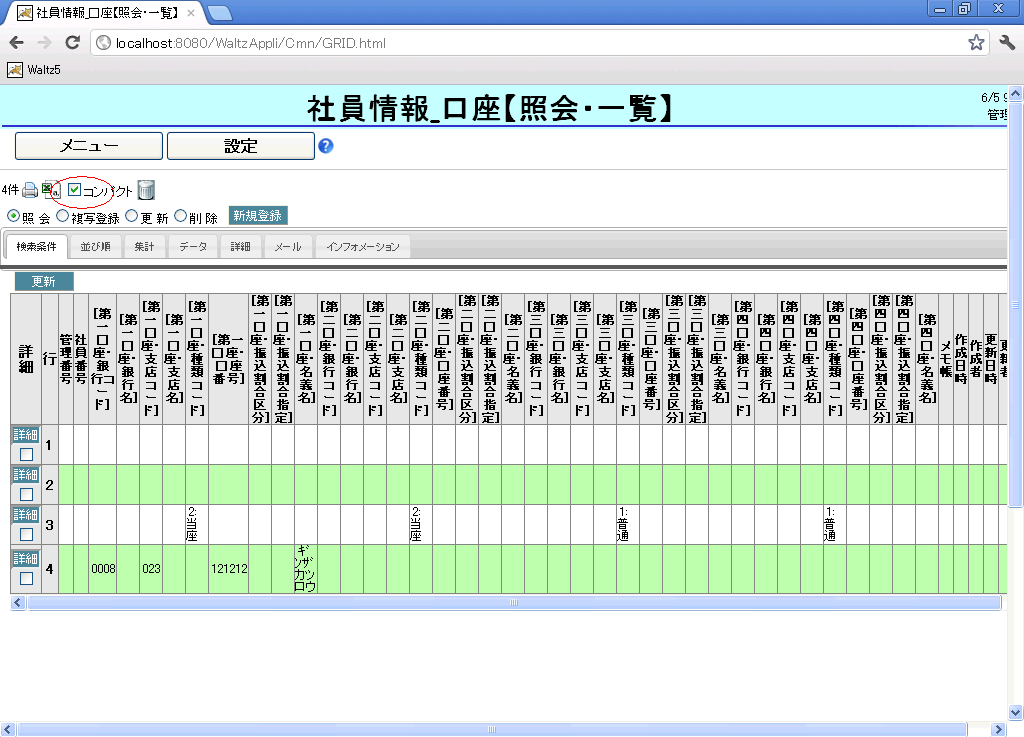 コンパクトボタンを押下すると全項目を一列で表示することが可能です