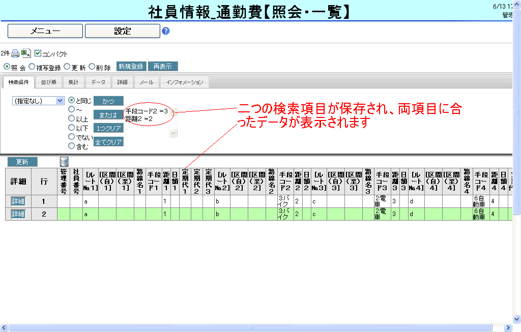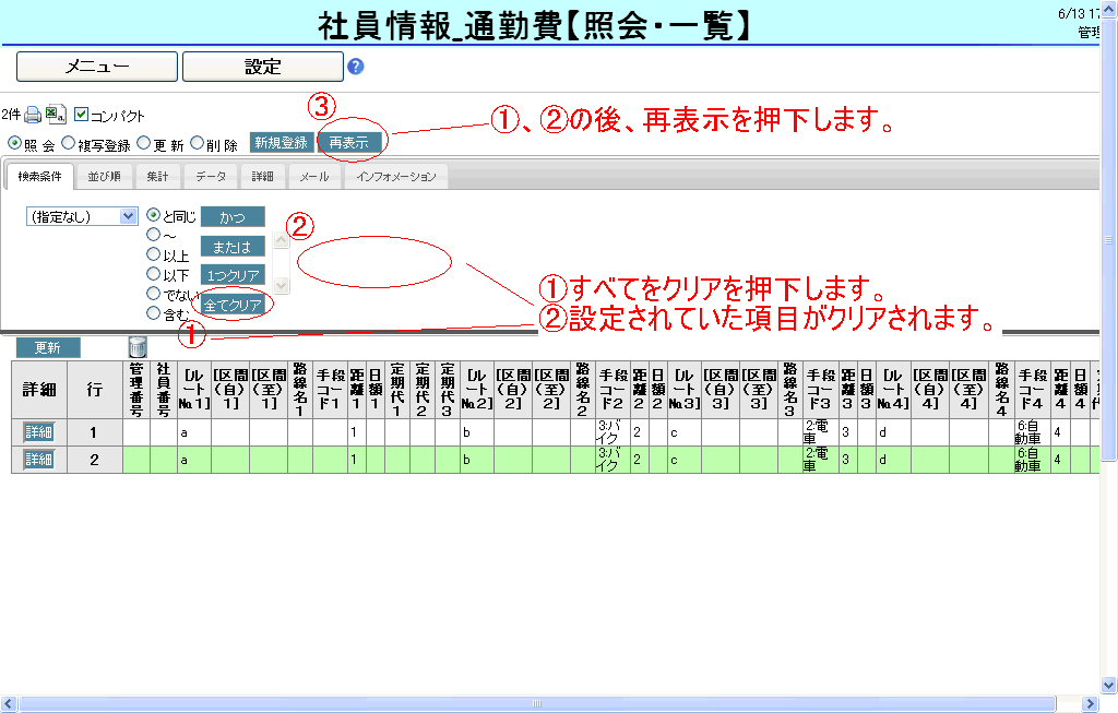 検索条件のタブをクリックすると、以下のような画面に変わり、検索条件の変更が可能です