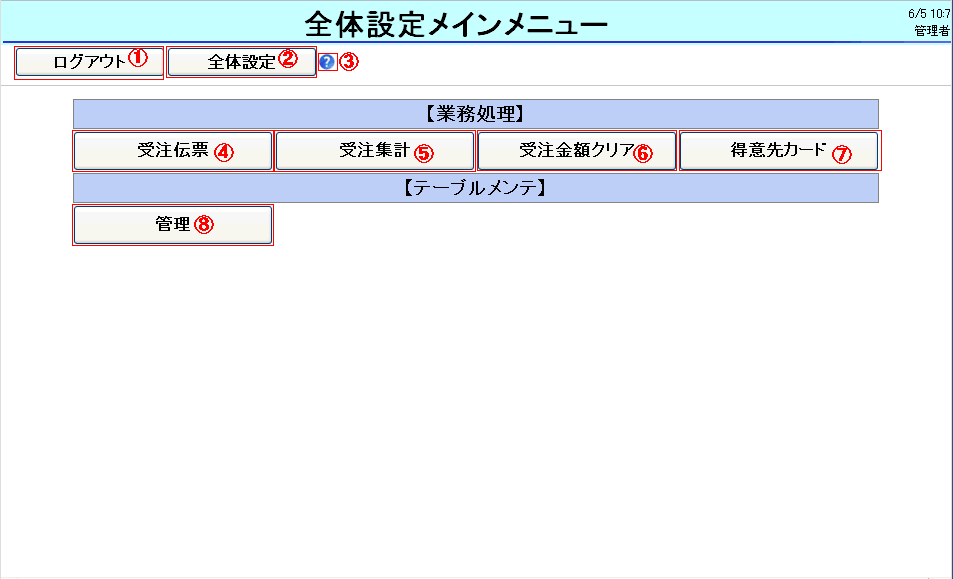 ②:全体設定(詳しくは全体設定内のヘルプを参照)