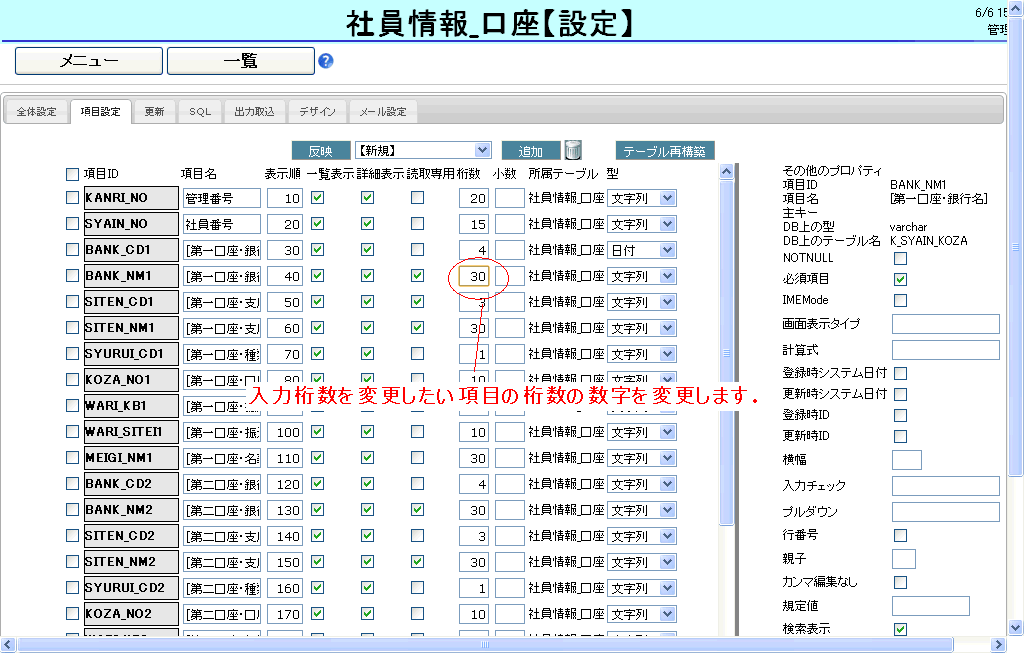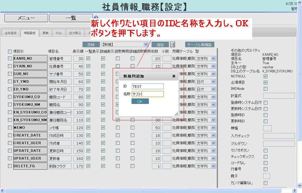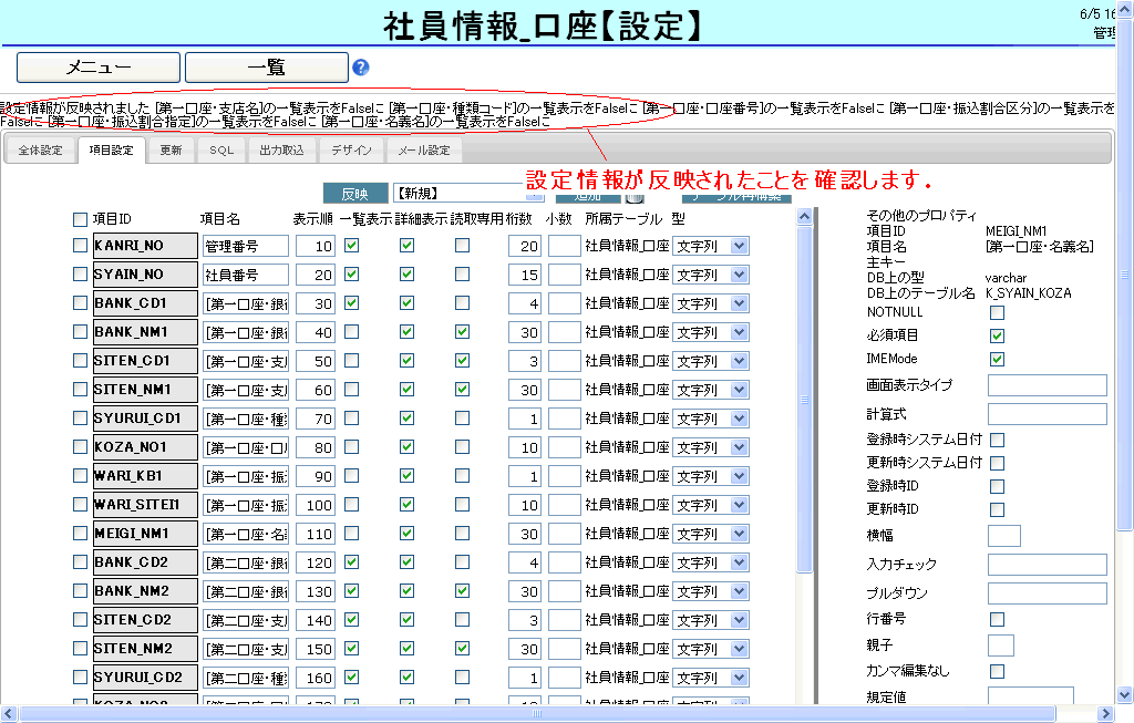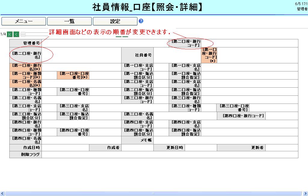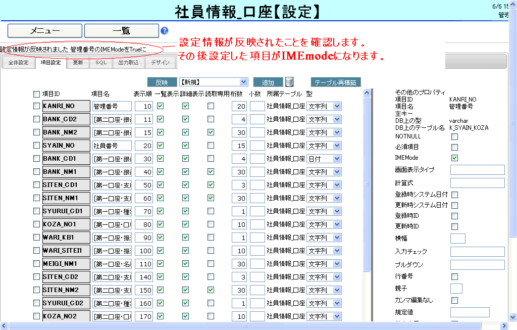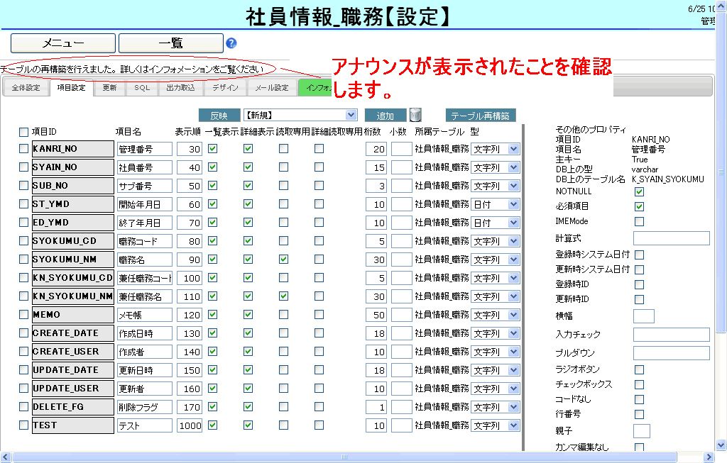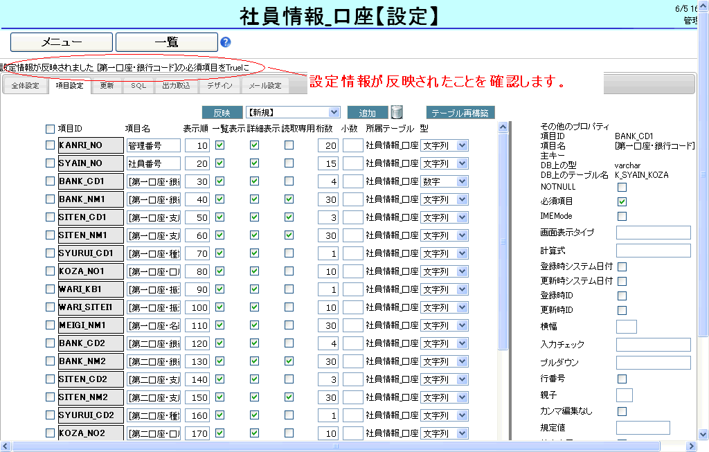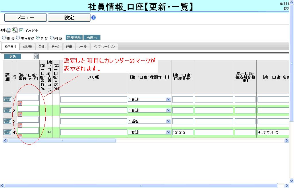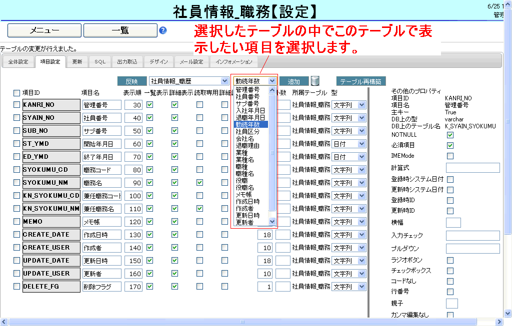 | ⑪更新時ID | チェックをつけると、その項目を更新した人のIDが表示されます |