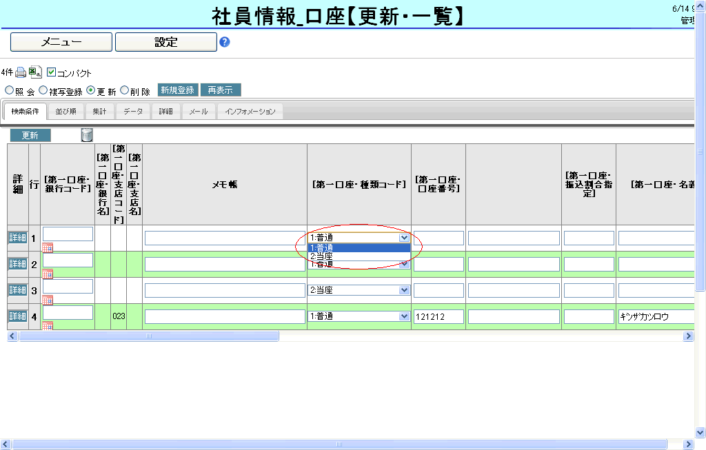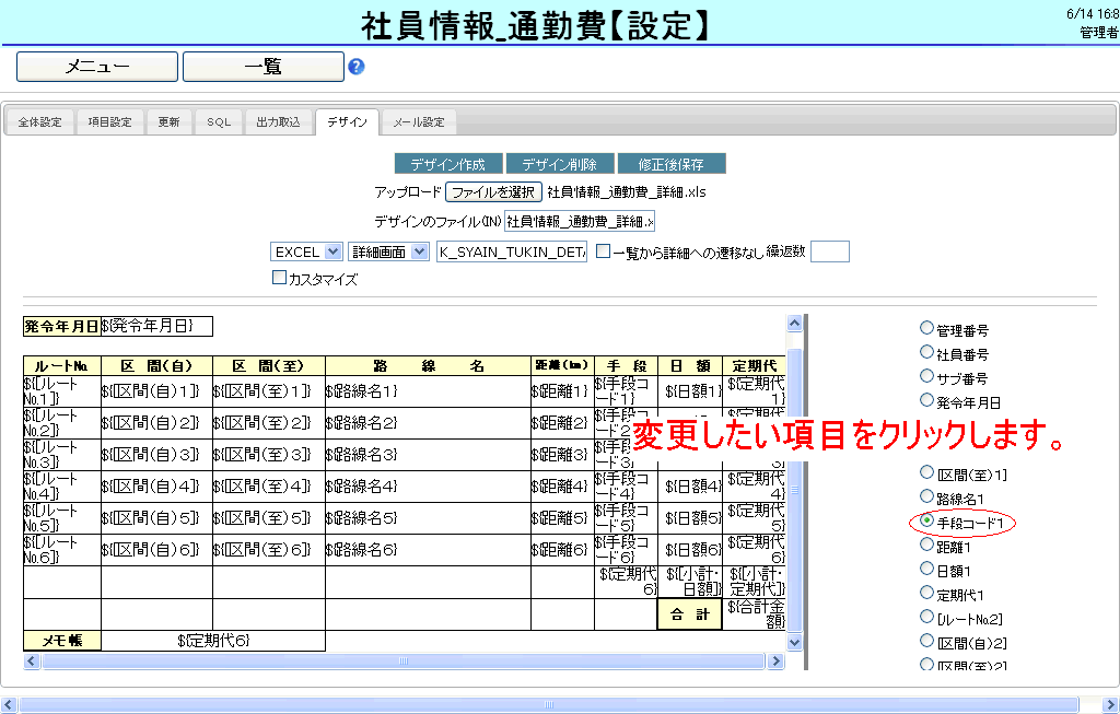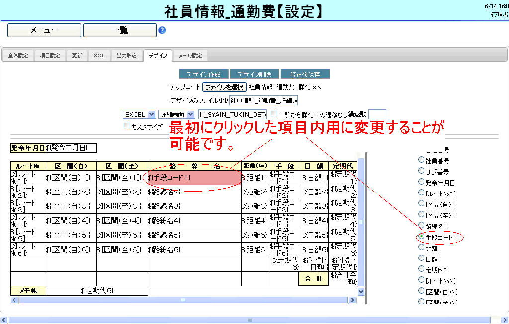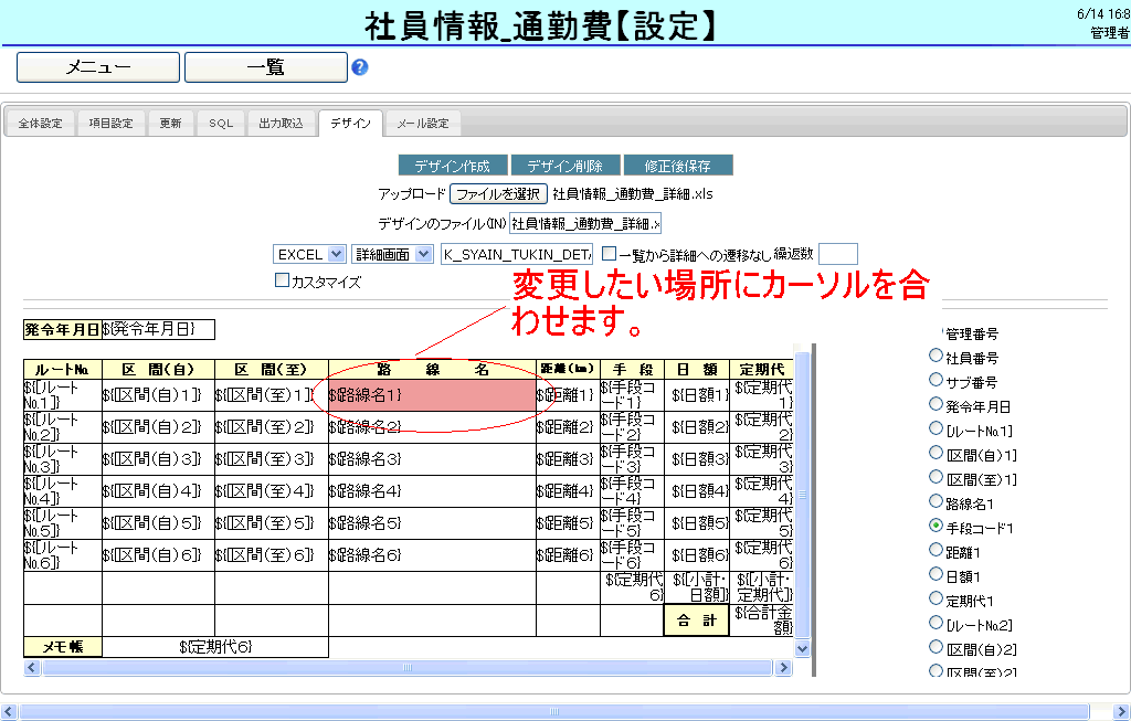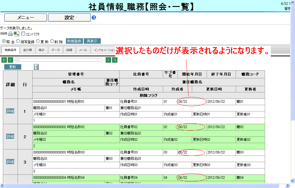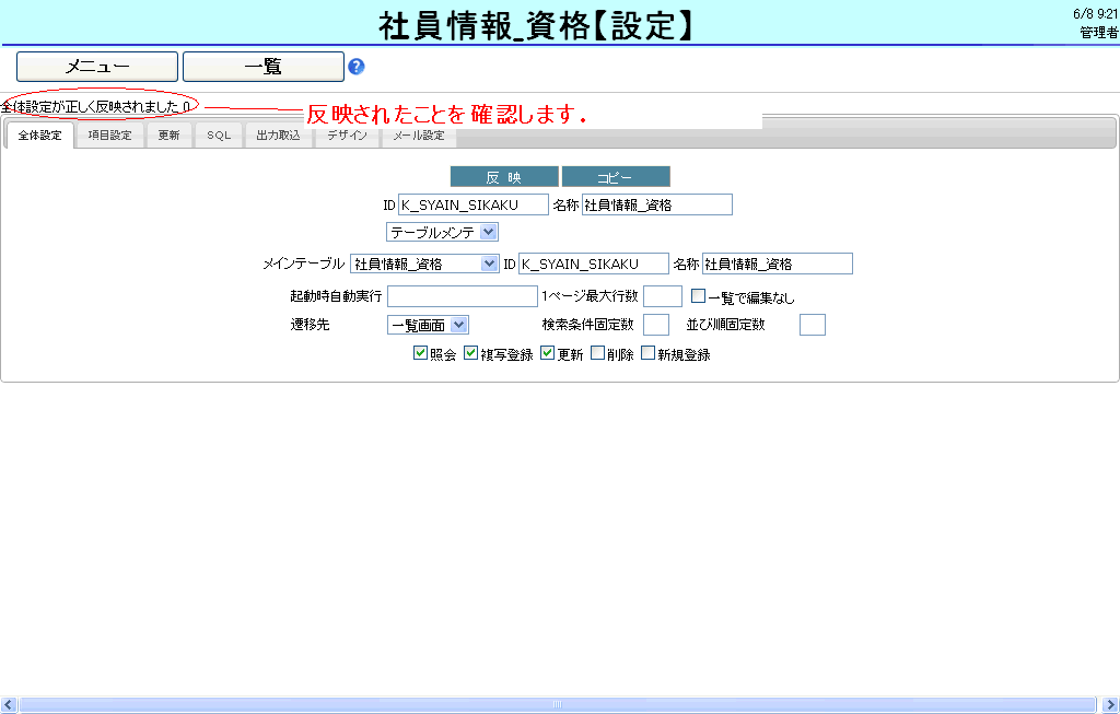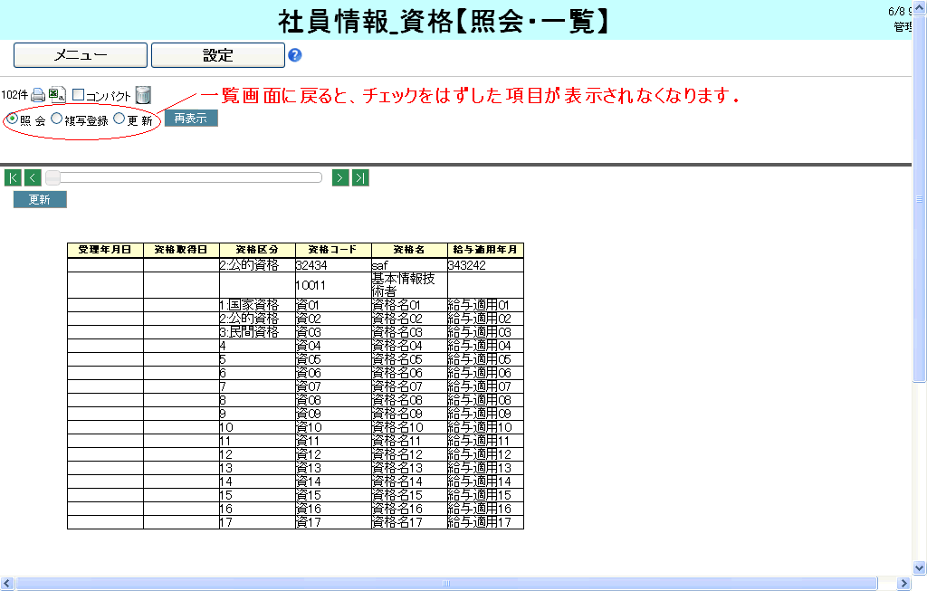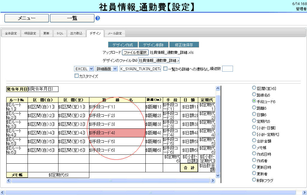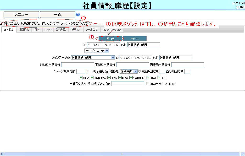 | ⑪更新時ID | チェックをつけると、その項目を更新した人のIDが表示されます |