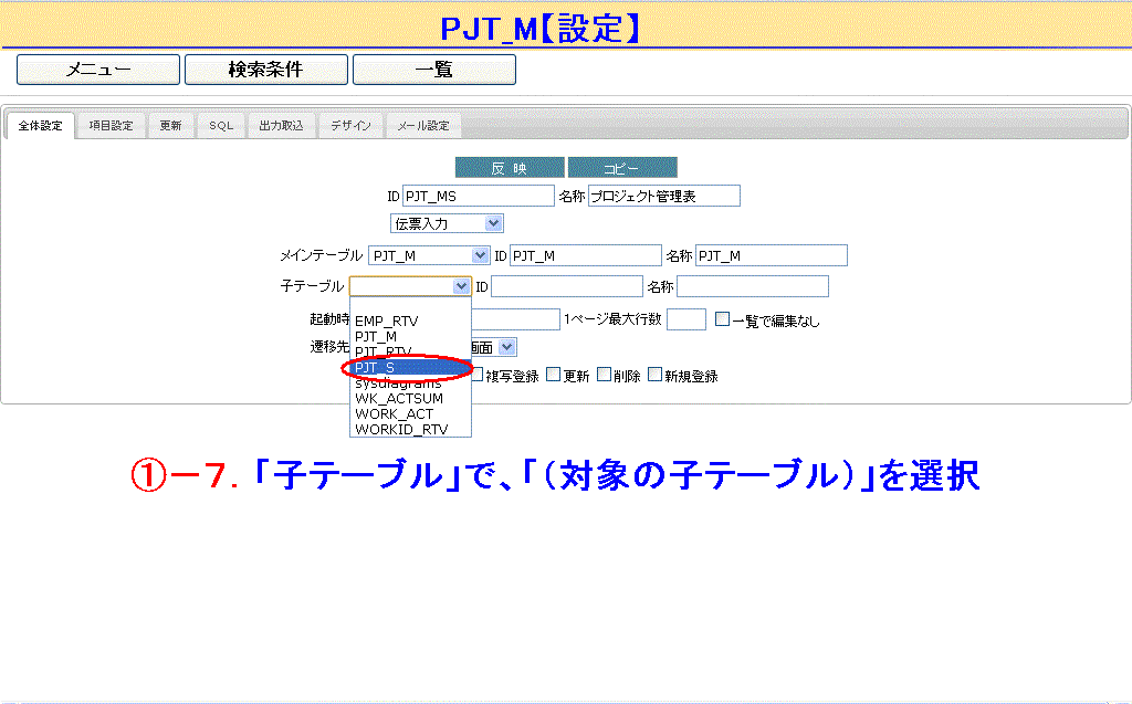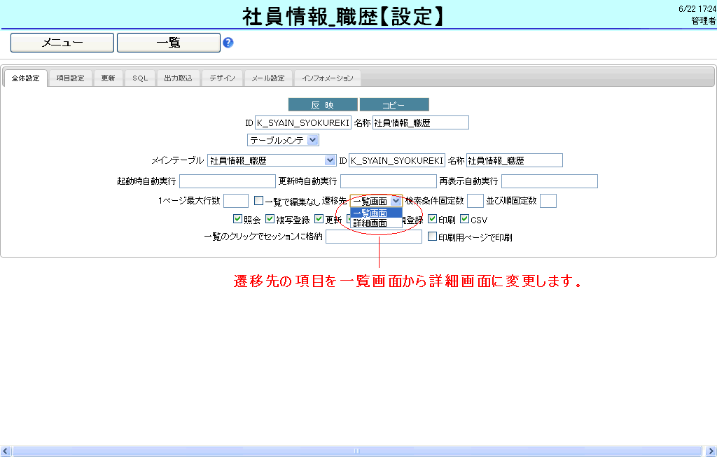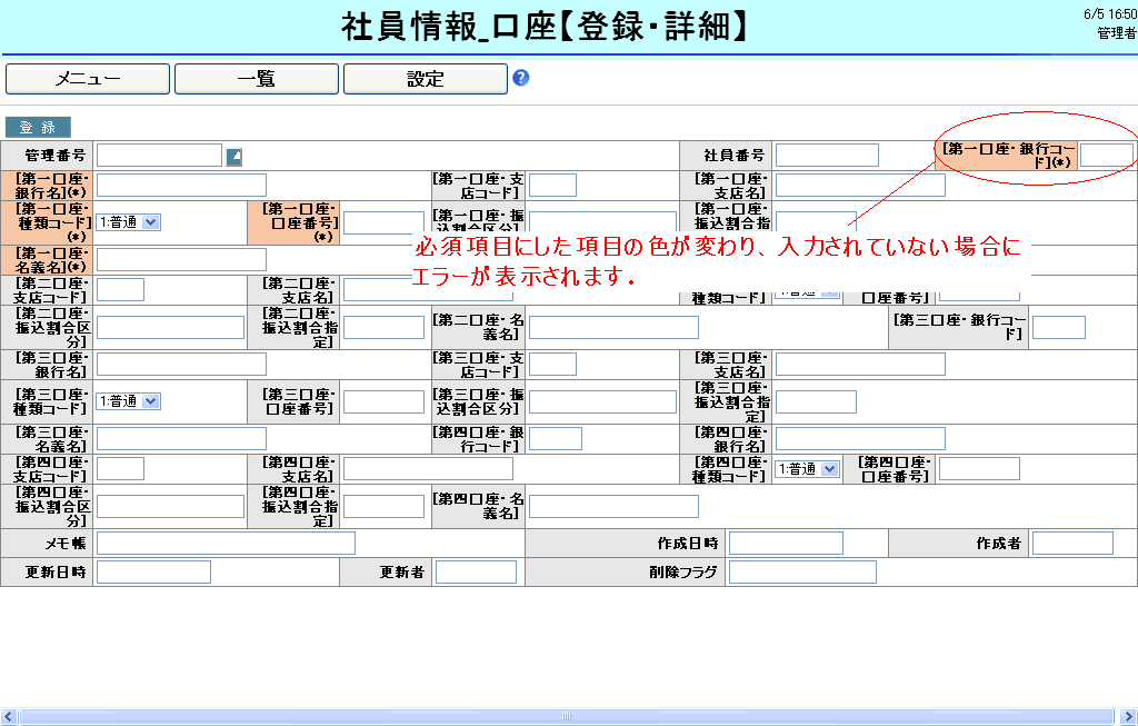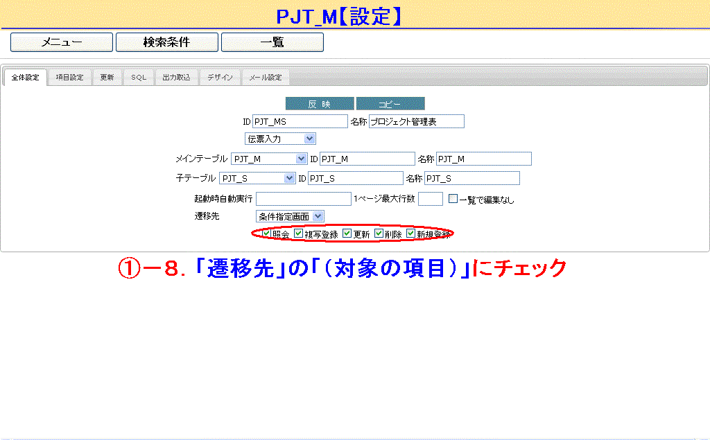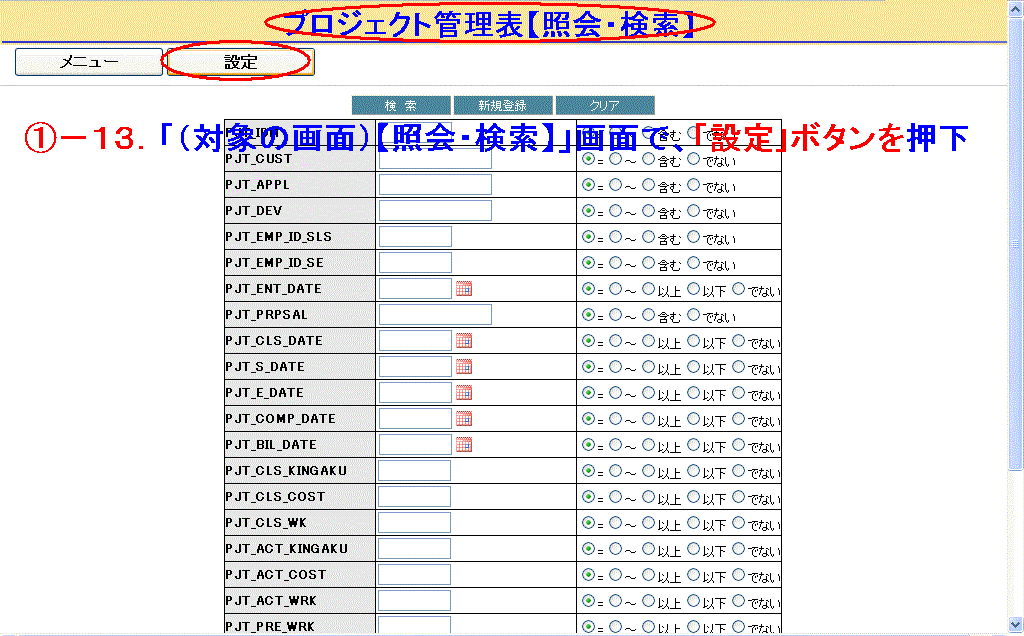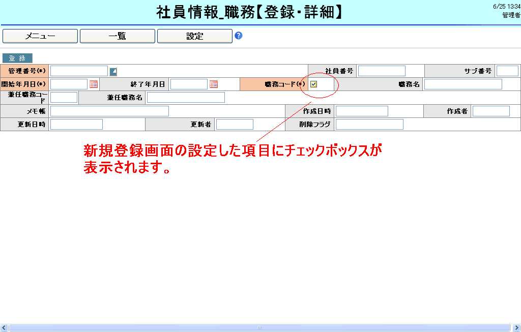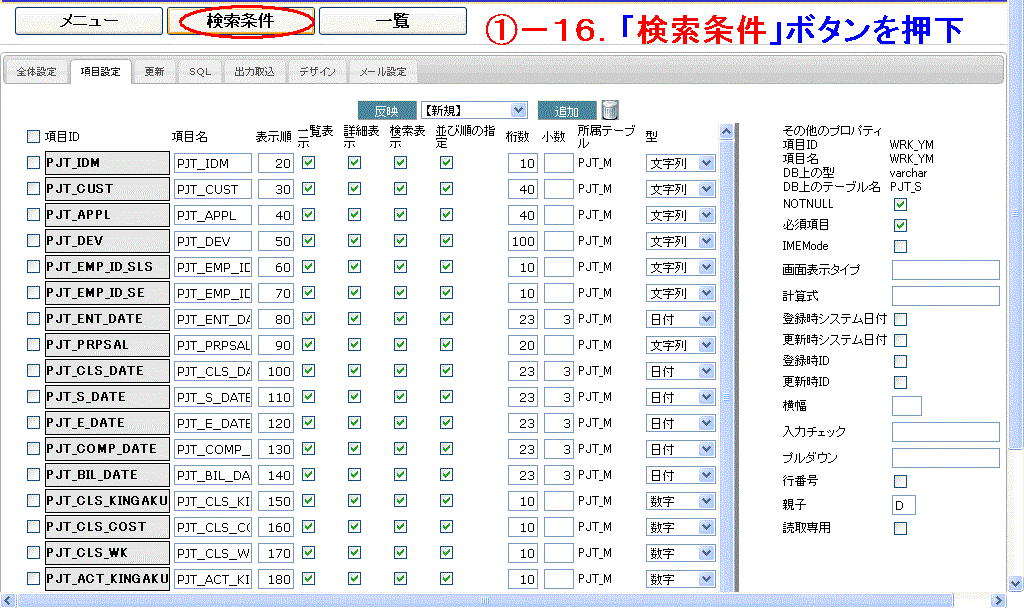 | ⑰検索表示 | チェックをつけると一覧画面の「検索」のプルダウンに表示されます |