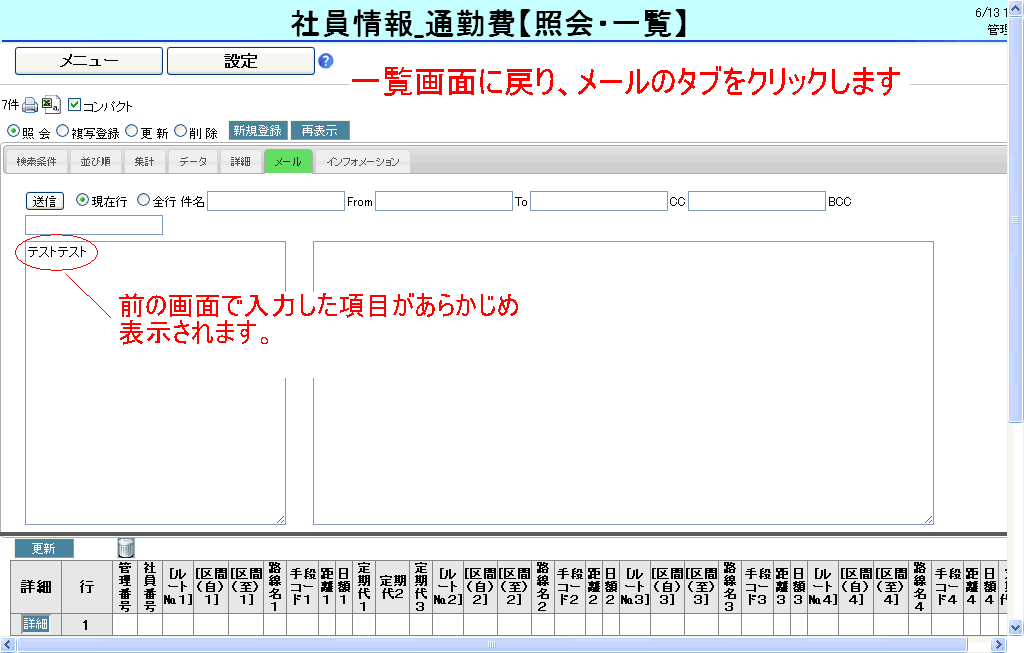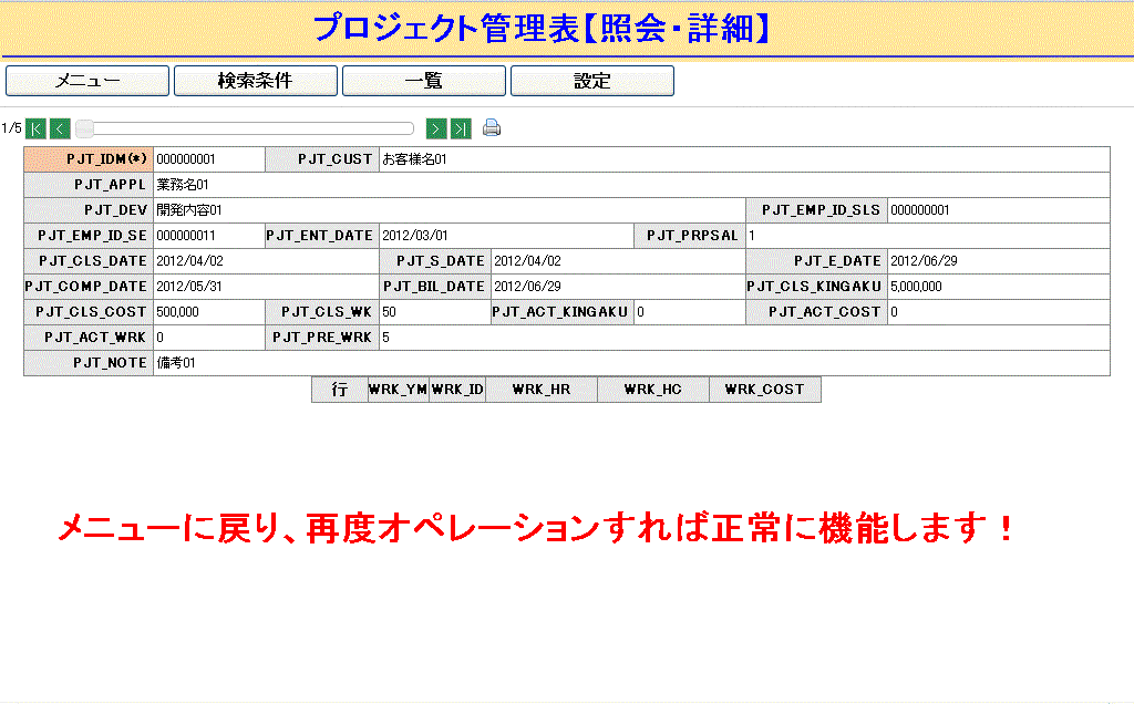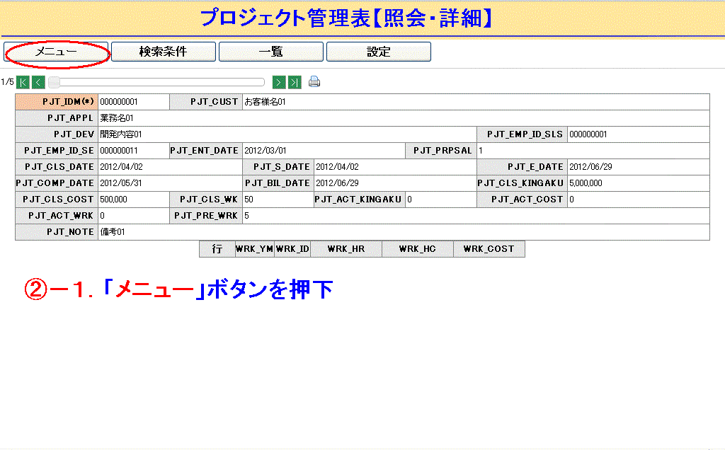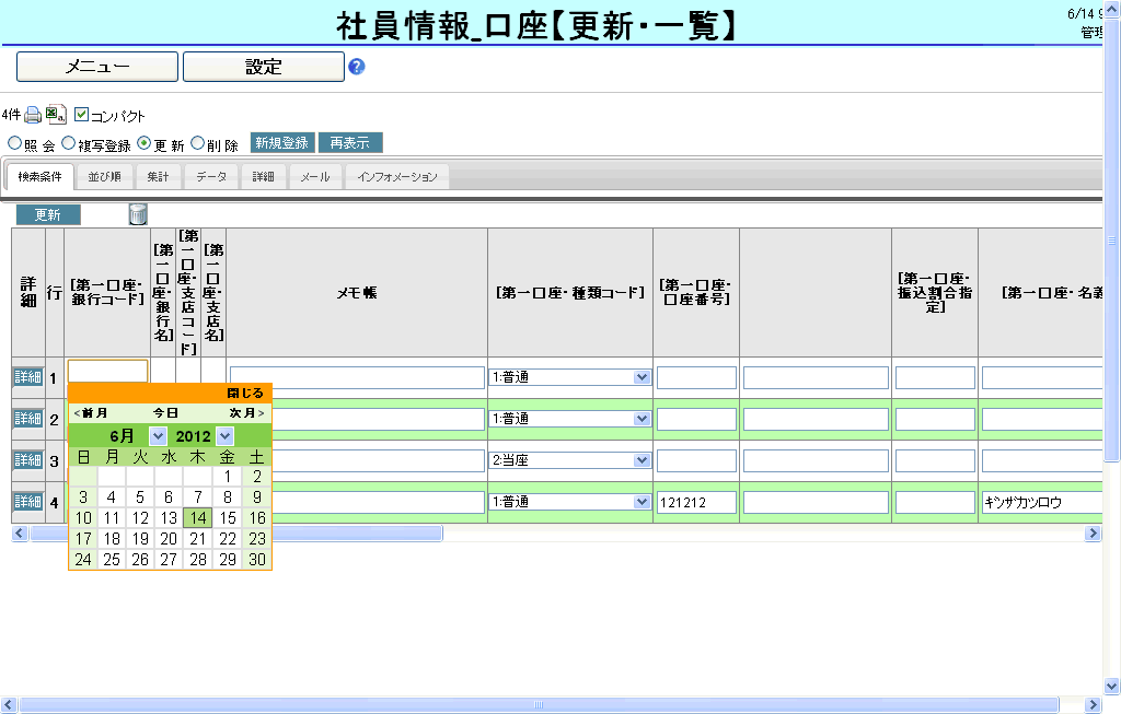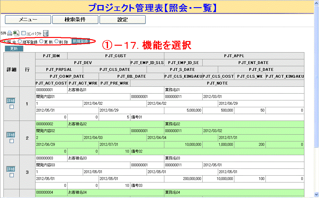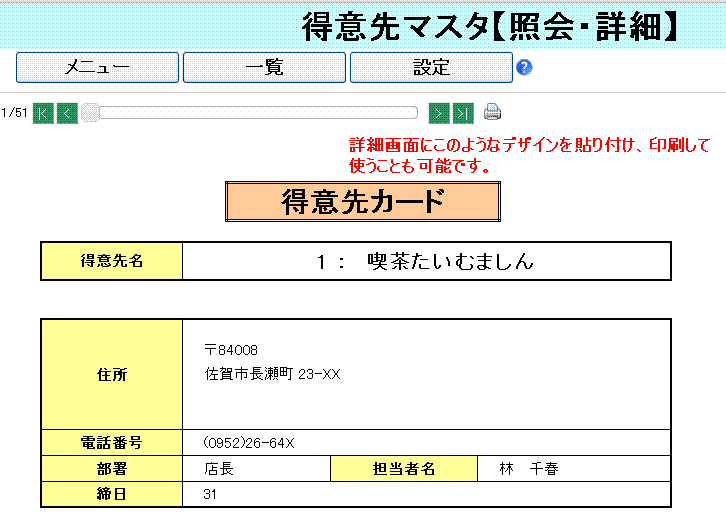 | ④1ページ最大行数 | 一覧画面での表示行数を選択できます |