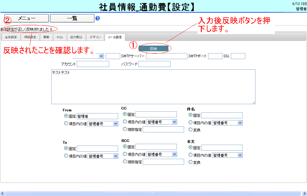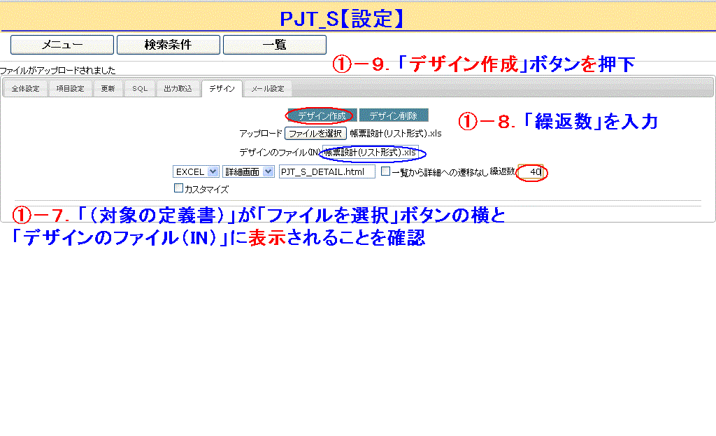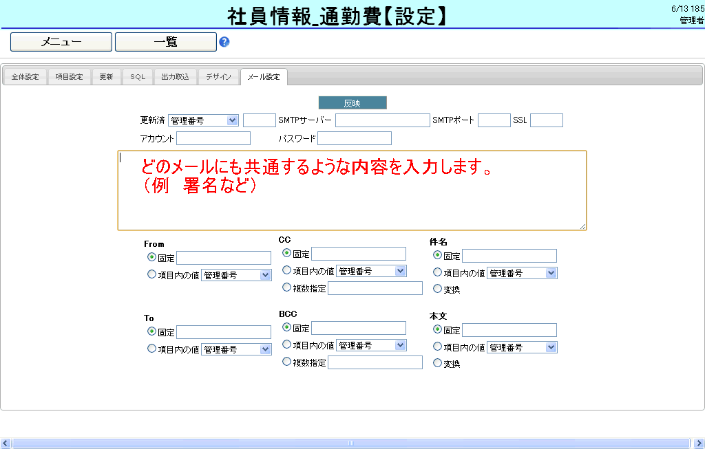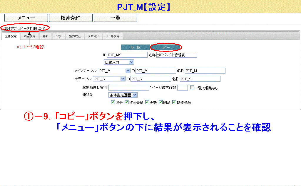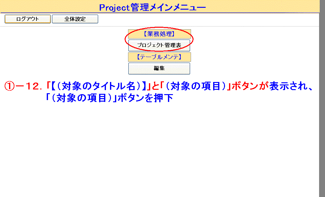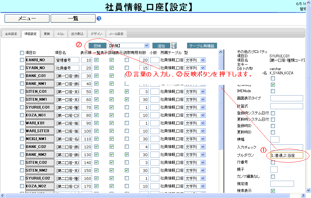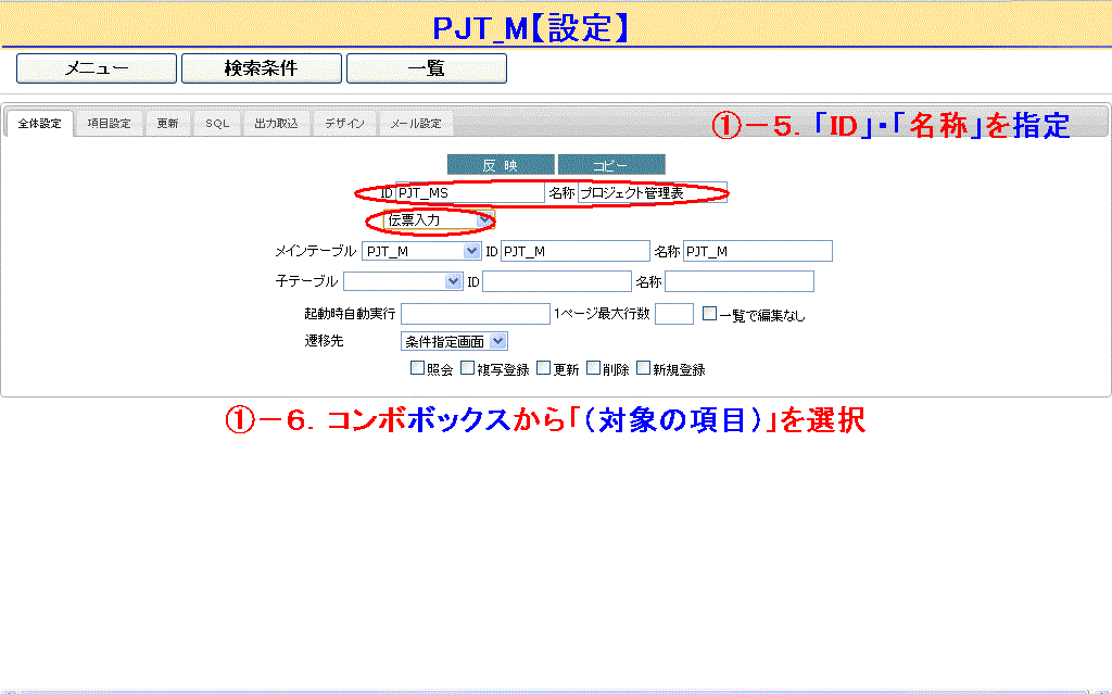| ③指定項目 | 更新指示画面でユーザが入力したい項目を作りたいときにそのタイトル名を指定できる |