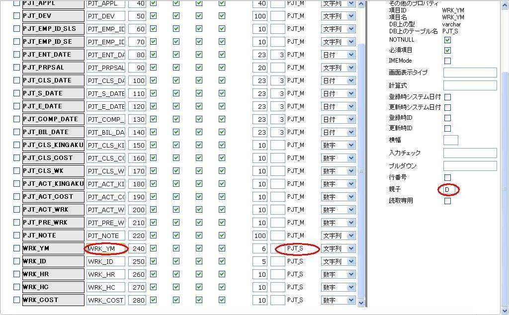 | ⑮親子 | 親子テーブル作成時に、親の項目には「H」、子の項目には「D」が表示されます |
